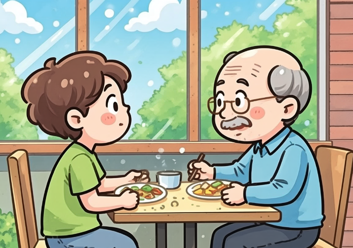 我们边吃边聊,他关心地询问工作上有没有遇到困难。