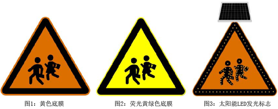 设置:安装于学校出入口道路上游方向,预警前方有学生流出入,有条件建议采用“太阳能LED发光标志”。