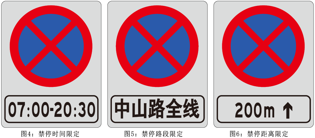 如果是对标志所示的交通管理指令,针对“适用条件”的解释,如:时间段、适用车辆种类或属性、路段方向、区域或距离、设置原因等,应当加"黑色边框"。